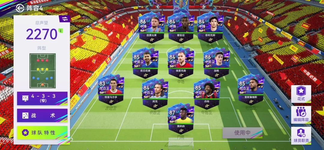 1、首先在球队阵容中点击花式按钮,进入花式编辑界面。