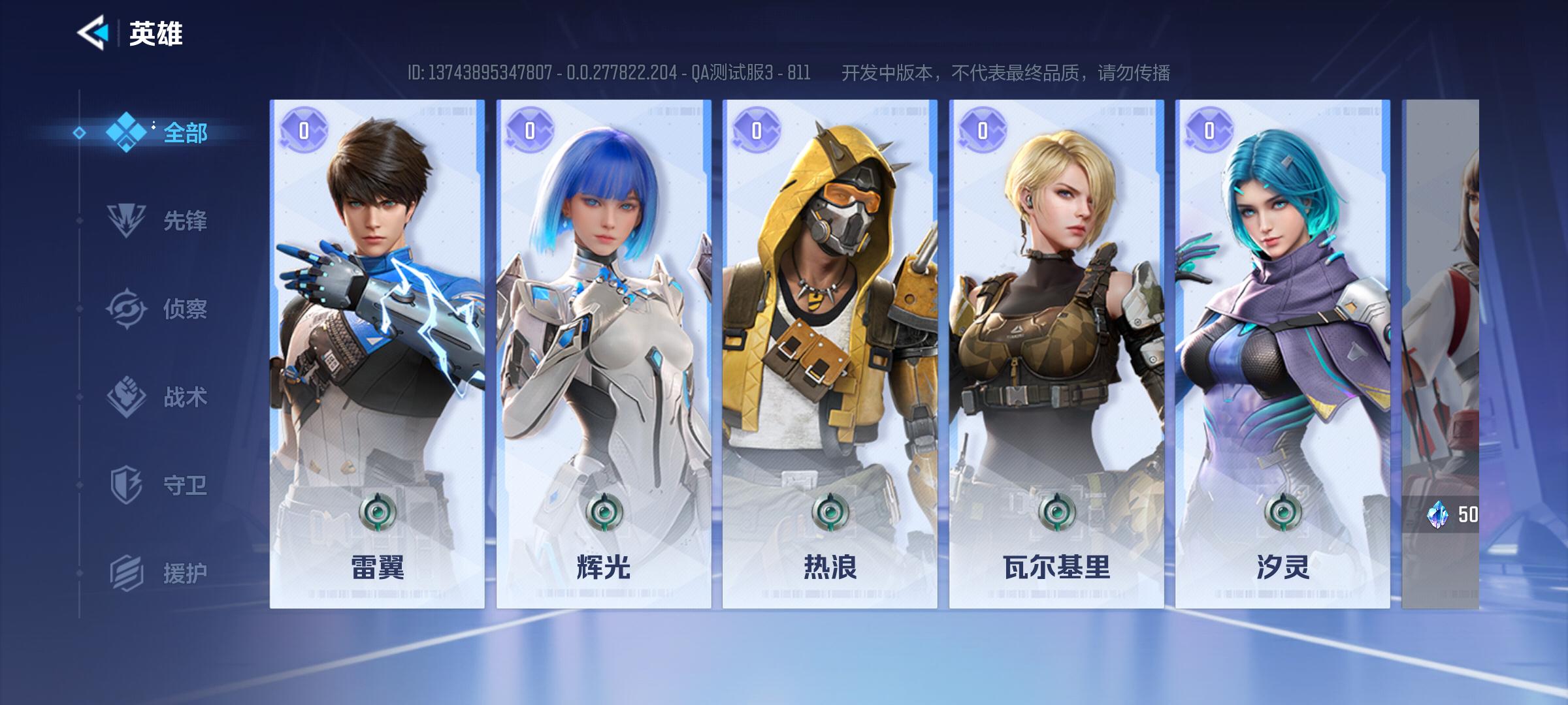 游戏中将玩家可使用的英雄根据技能、定位的不同做了分类,分别为:擅长攻击与进场的「先锋」、为友军提供保护的「守卫」、探查地方动向的「侦查」、限制敌方的「战术」、治疗或buff队友的「援护」。