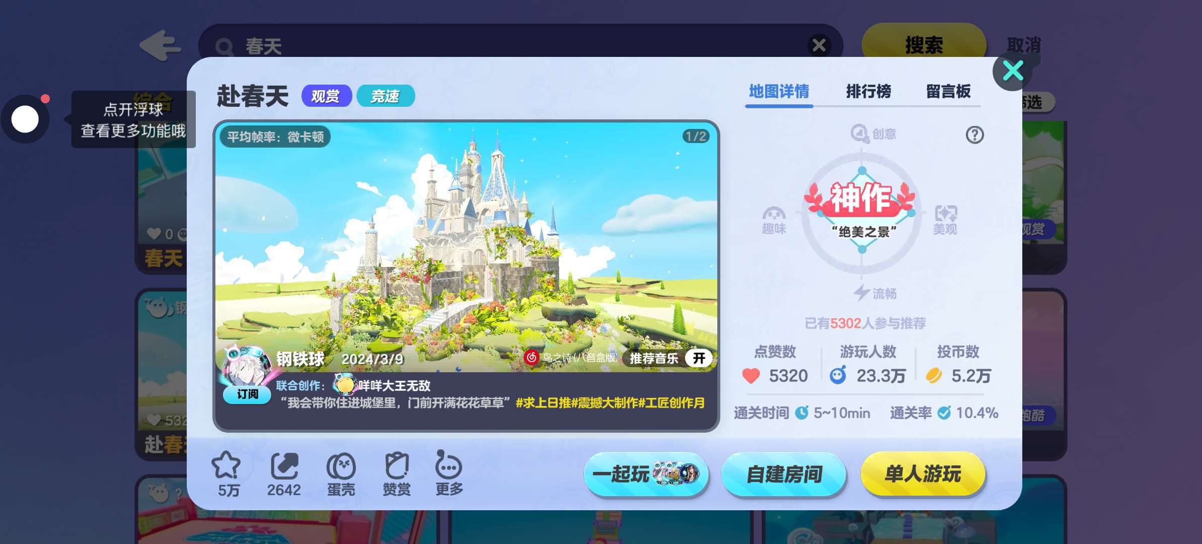 这张图虽然游玩人数和赞数比较少,但是特别简单,很适合新手蛋,终点的小花屋看起来也非常的温馨,大家也可以去玩玩👀🌹