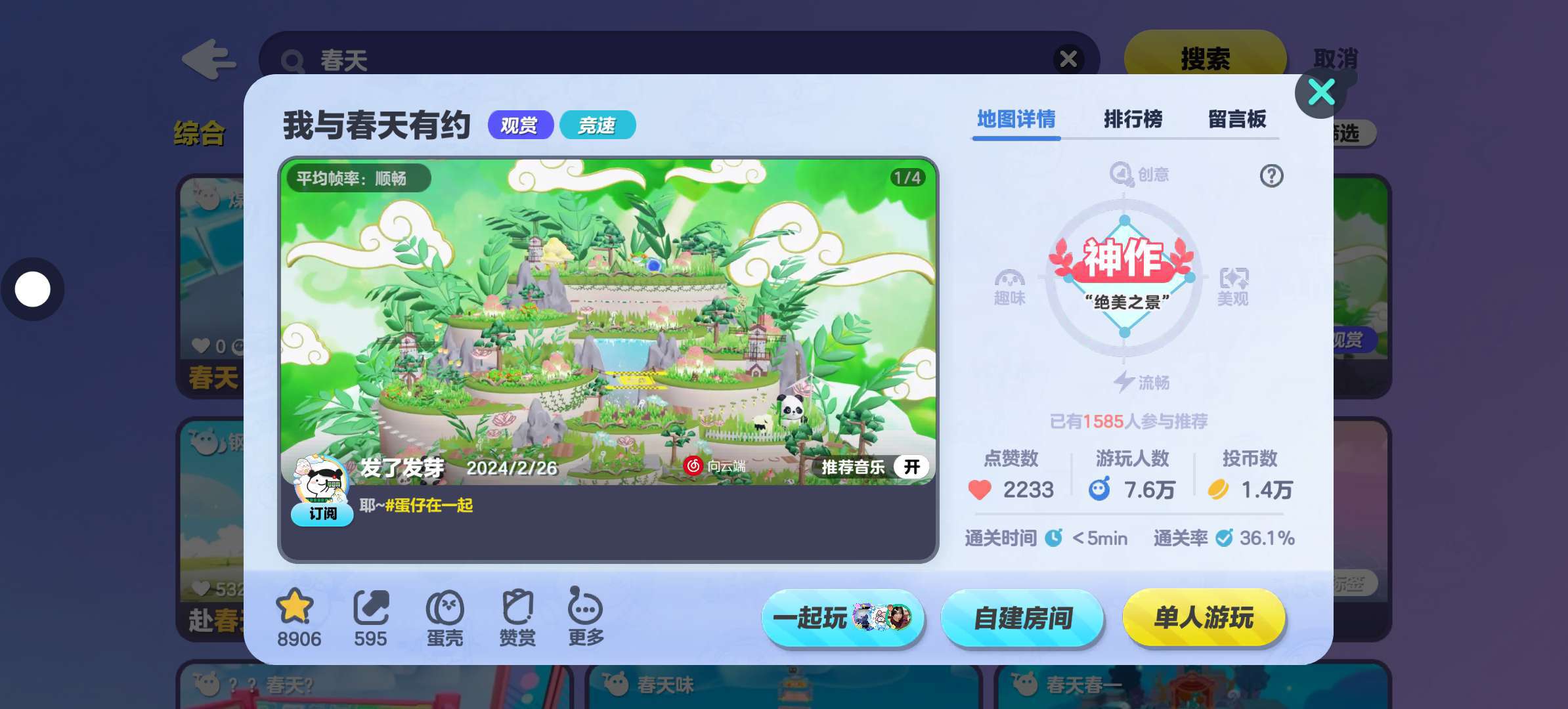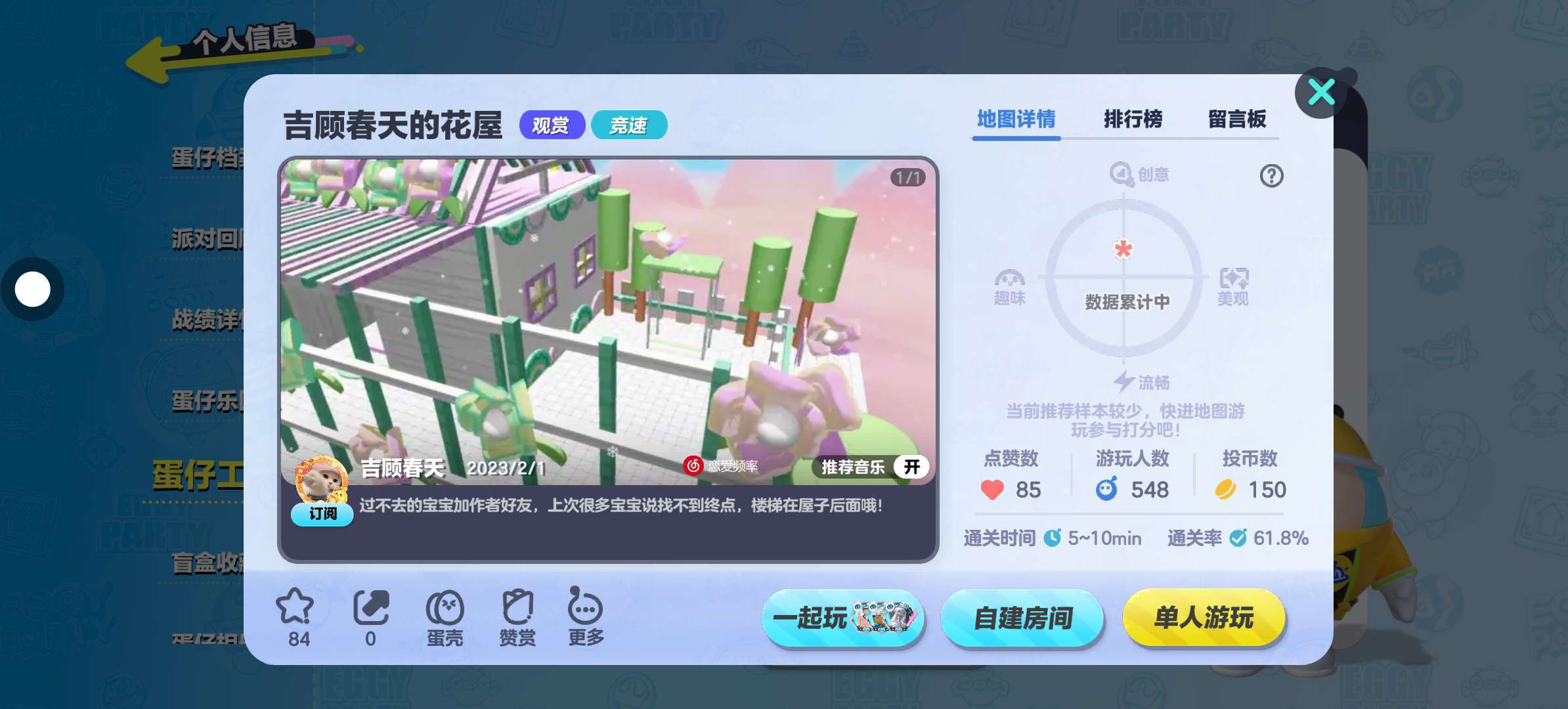 这张图虽然游玩人数和赞数比较少,但是特别简单,很适合新手蛋,终点的小花屋看起来也非常的温馨,大家也可以去玩玩👀🌹