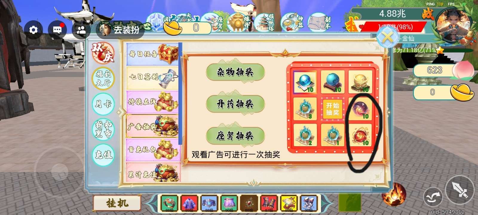 这个看视频抽奖的这两个圈子里的丹药,摆设啊绝缘呀,我看几十个广告,他抽不出来一次