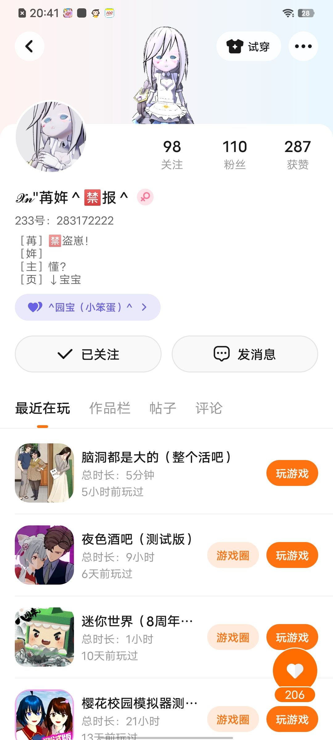 家人们无语了,又有一个人盗我的名字和服装劝你马上回来不然举报套餐送给你😅😅😅