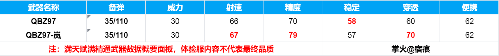 虽然QBZ97-岚的距离衰减被小砍了一刀,但是其穿透、射速、切枪、换弹、点稳精准以及后坐力却得到了不小的提升。