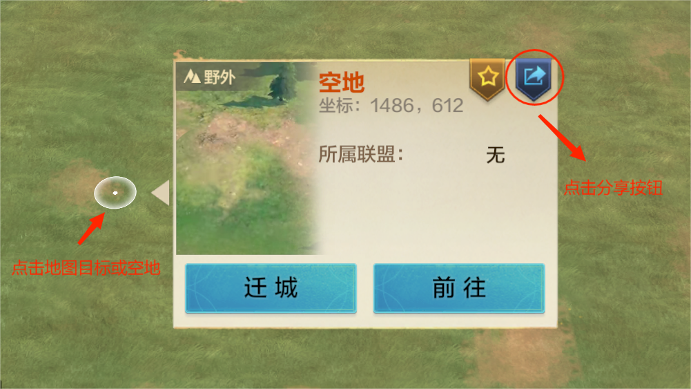 无法跳转的目标,集结发起者可以通过聊天频道分享位置给其他领主。