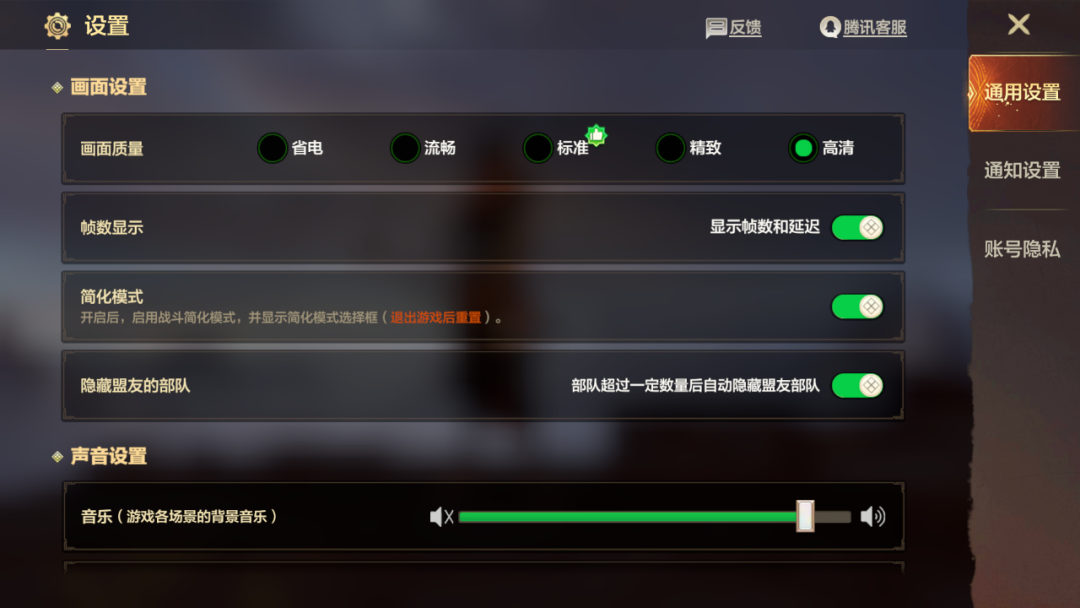 隐藏盟友部队:大地图团战单位过多时可以开启,提升画面流畅度