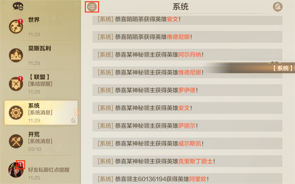 亲爱的领主大人,只需要点开聊天窗口,就能看到好友私聊的红点提醒哟~