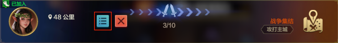 联盟-战争界面可以查看集结目标及距离,部分目标可以点击跳转地图位置。
