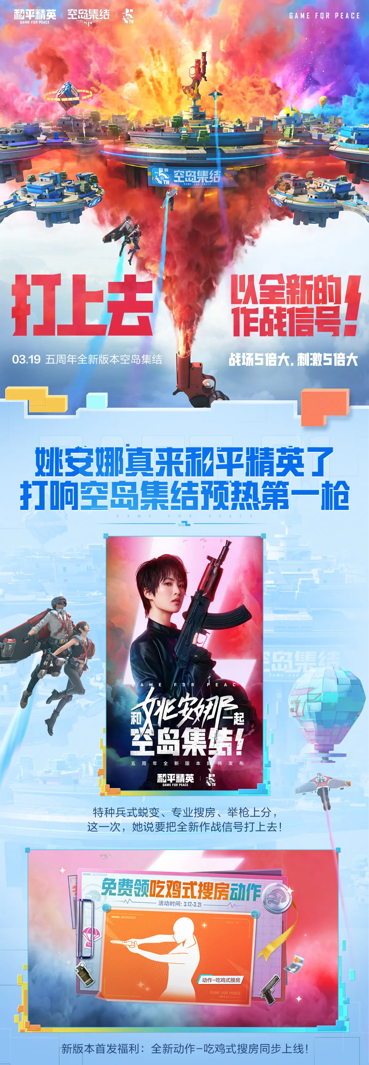 五周年来空岛集结,和平精英全新版本将于3.19日正式上线!
