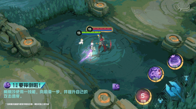 梅丽莎使用一技能,向前滑一步,并提升自己的攻击速度。