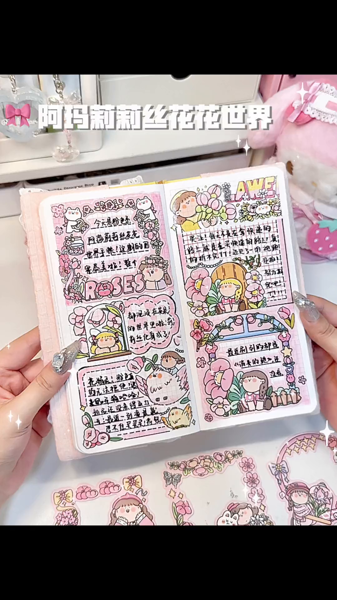这是一期沉浸式粉色系拼贴手帐教程,使用《百变妮妮》胶带进行手帐排版,展示了贴纸粘贴等手帐制作过程,教你打造可爱风格的手帐。