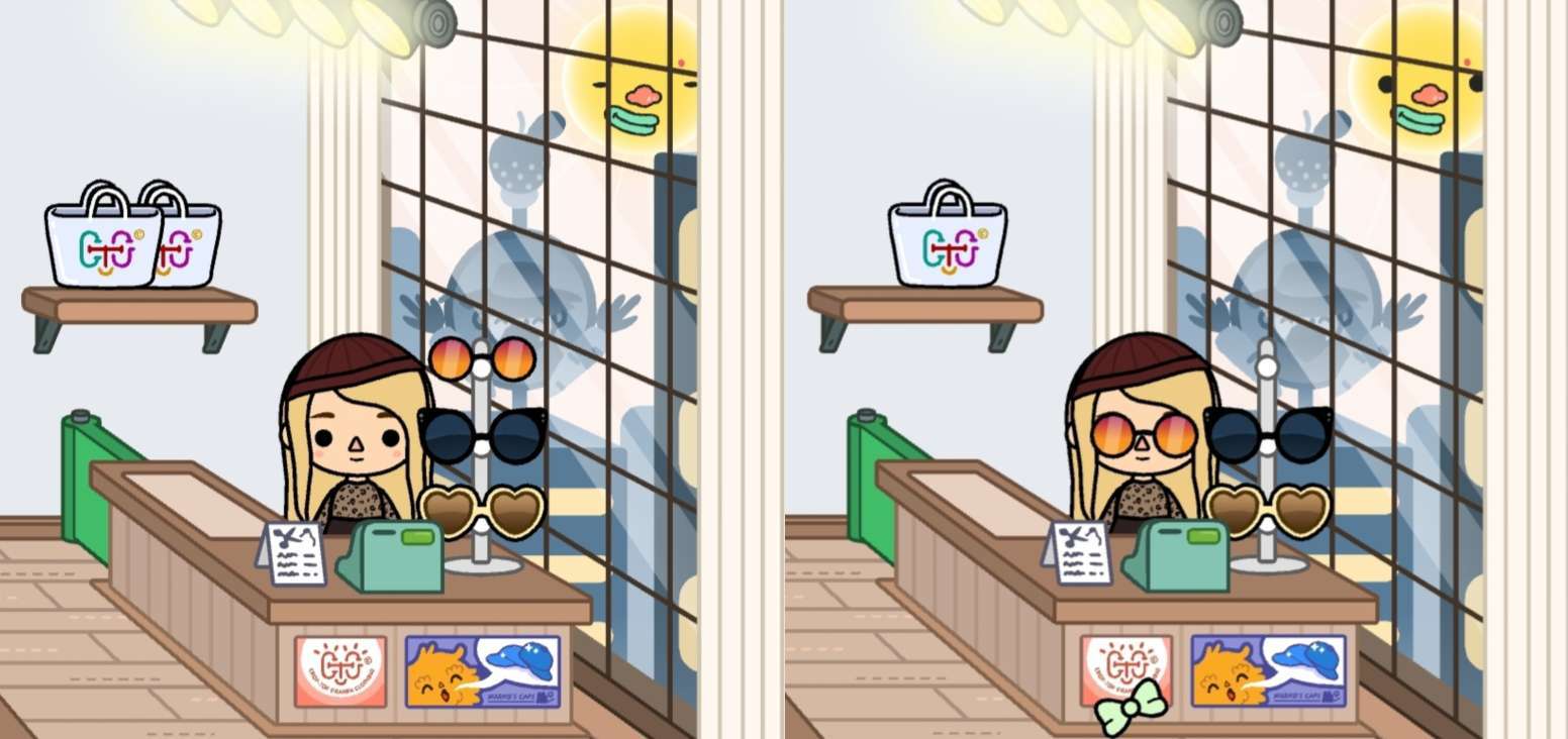 参考左边的图,看看右边分别是有几处不同点呢?