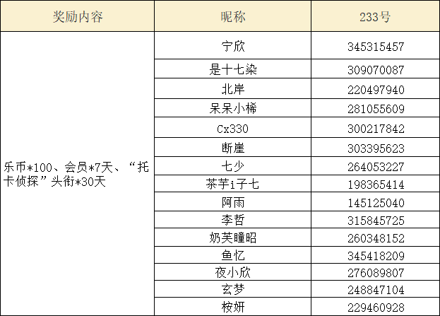 乐币*100、会员*7天、“托卡侦探”头衔*30天