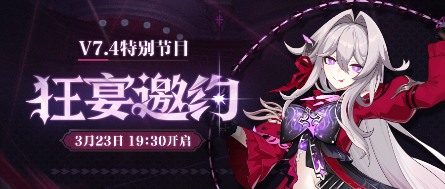舰长好!3月23日本周六晚19:30,《崩坏3》V7.4「狂宴邀约」特别节目将在爱酱的直播间举行。这次又会有什么精彩内容呢?请看机密情报——