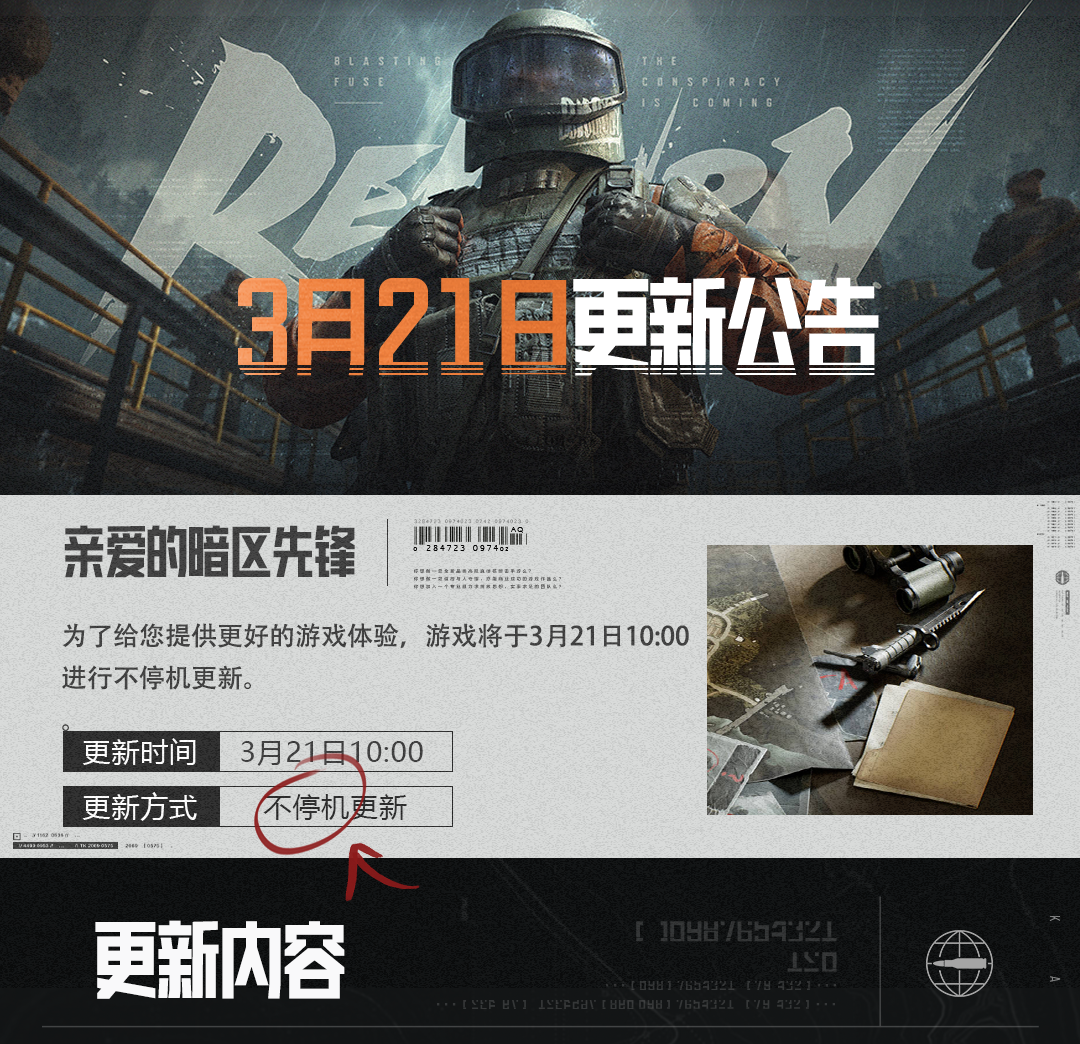 此次为不停机更新,资源更新完成后即可正常进入游戏;已经登入游戏的先锋不受任何影响,建议重启客户端完成更新,体验完整内容。如遇错误提示,请联系官方客服。