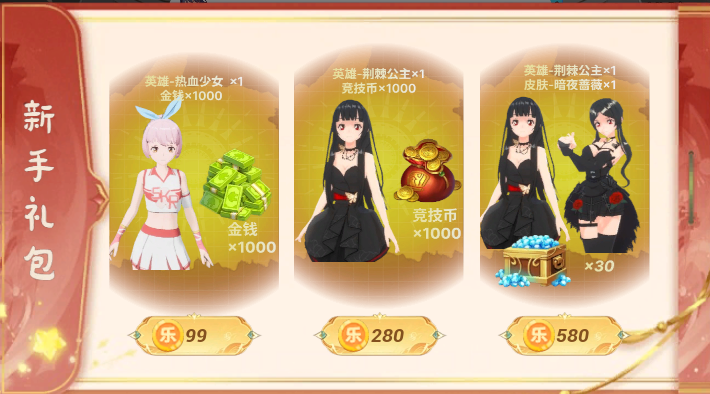 4.三类新手礼包,开放给所有玩家,每人仅可购买一次;
