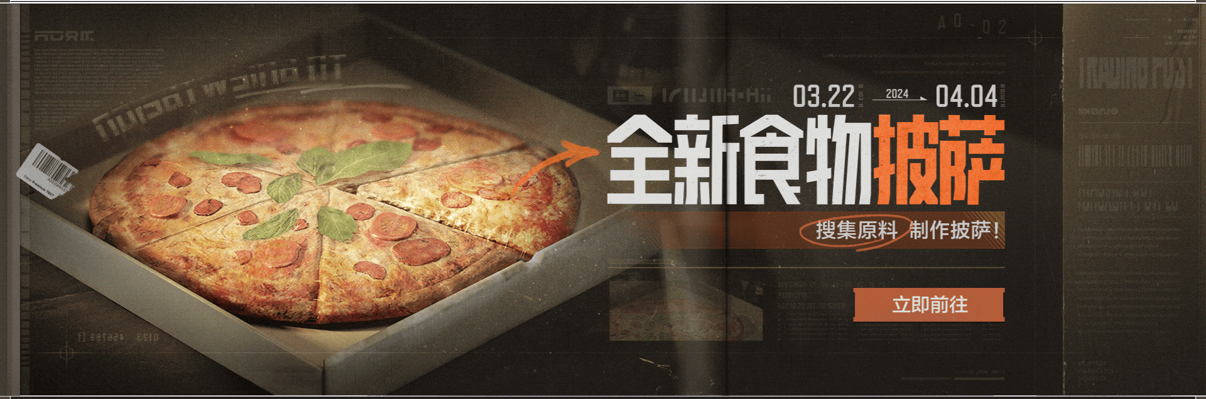 各位先锋们,最近一款风靡卡莫纳的食物原料散落在暗区各处,收集食物原料后制作披萨,食用后可获得独特效果,快与你的队友一起寻找制作神秘披萨的配方吧!