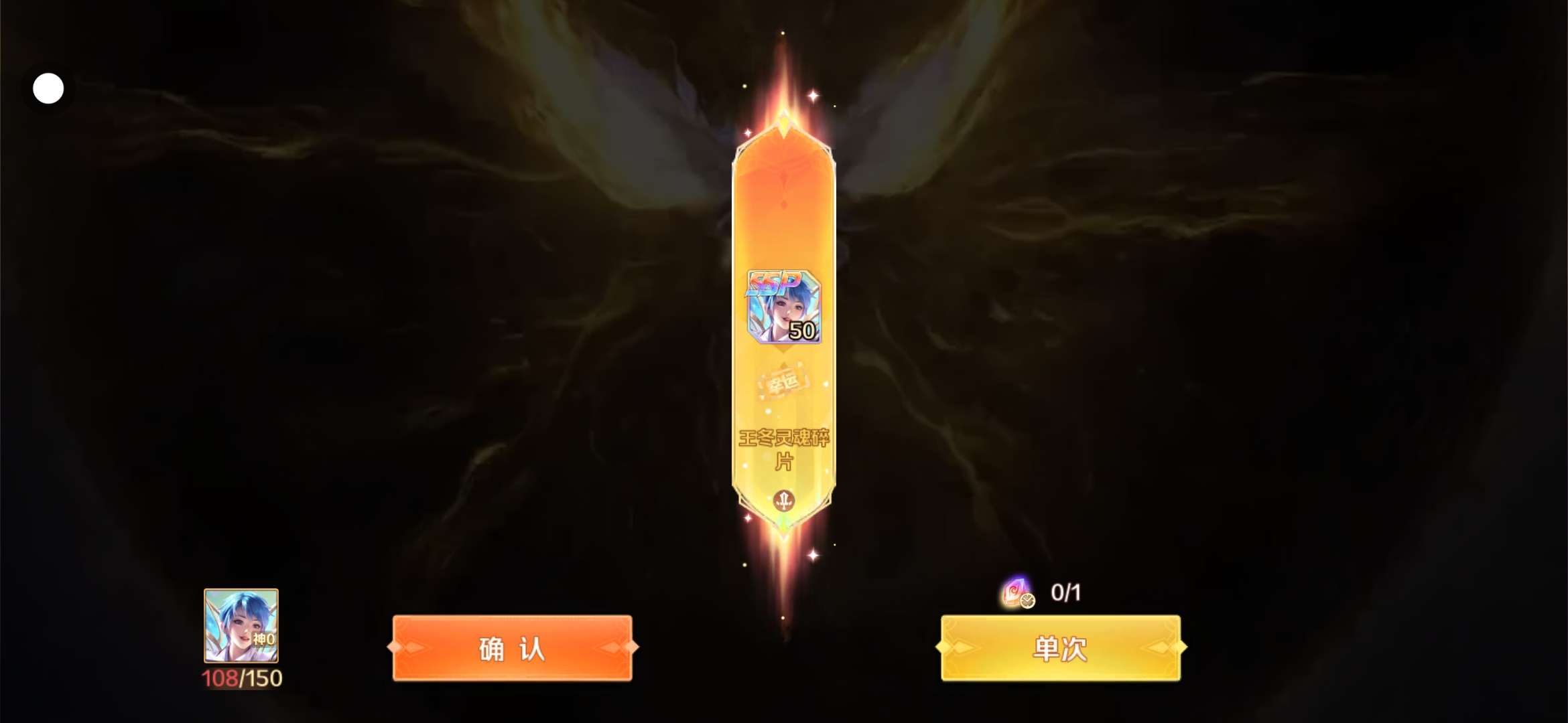 单抽出50片王冬碎片,下次返场应该可以得到。