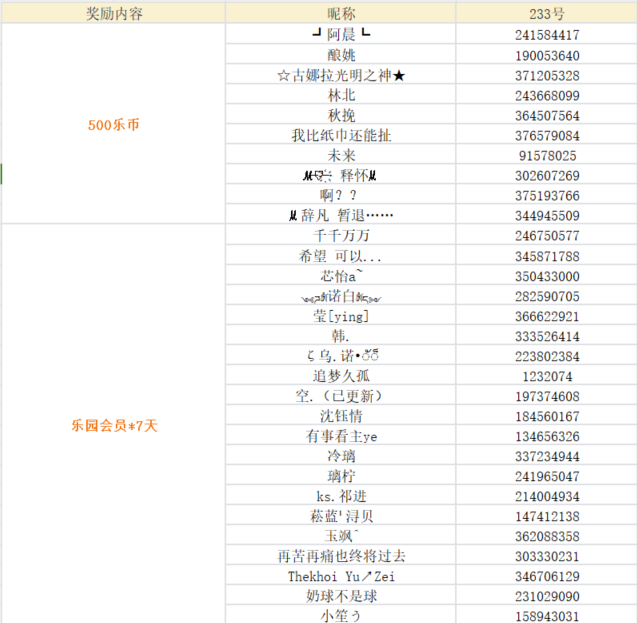 随机抽取20名,送出 233会员*7天