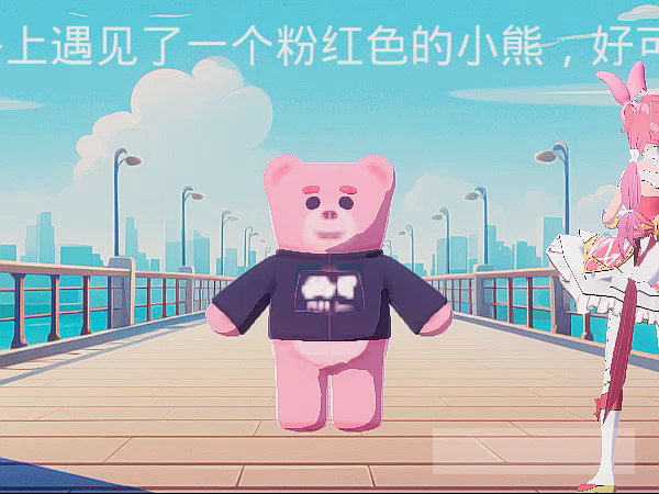 路上遇见那个粉红色的小熊好可爱,我喜欢,我喜欢。我想把它带回家啊可是不能带回家,只能在路上摸了摸