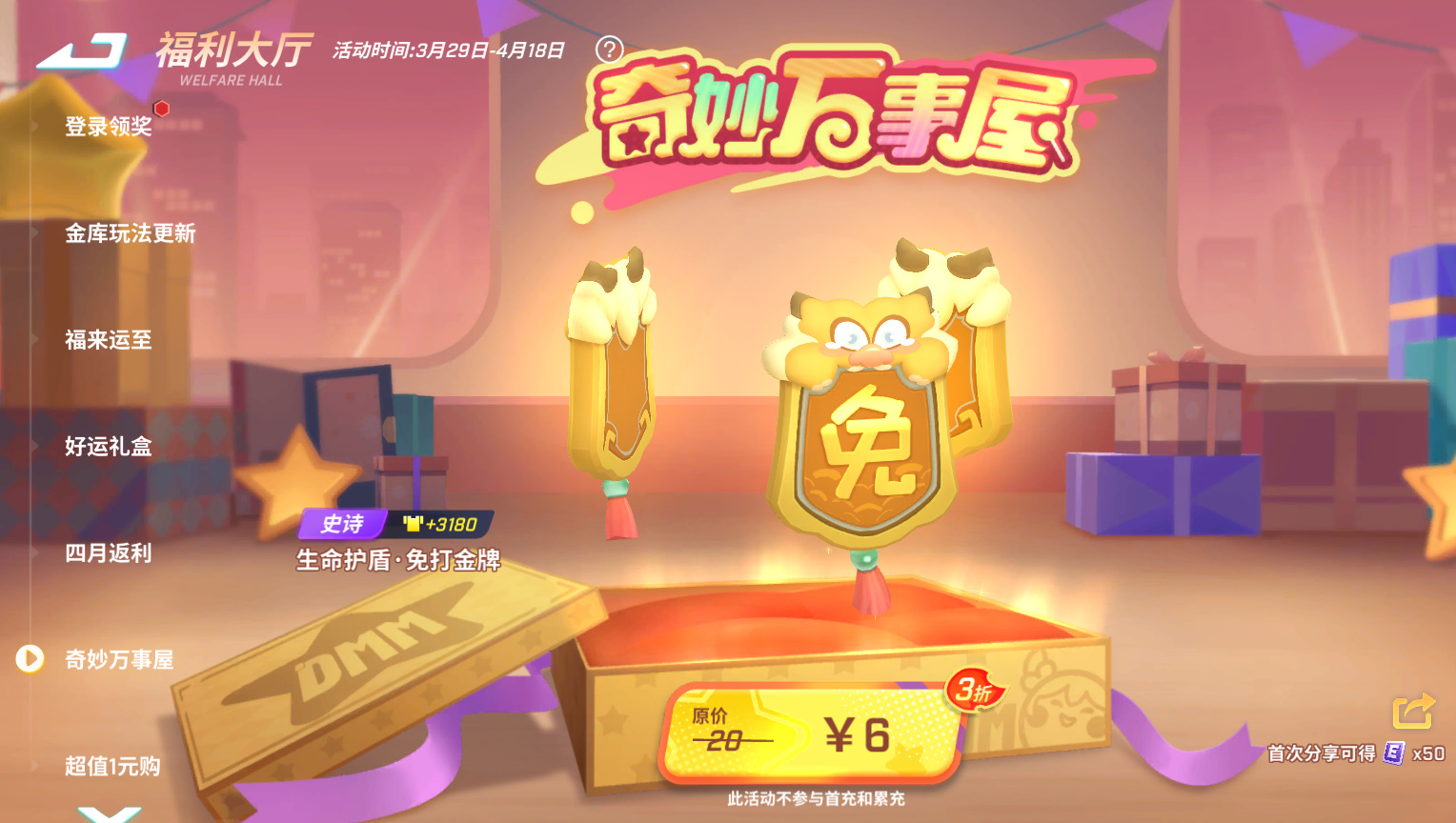 【生命护盾·免打金牌】上线,只要6元即可获得!