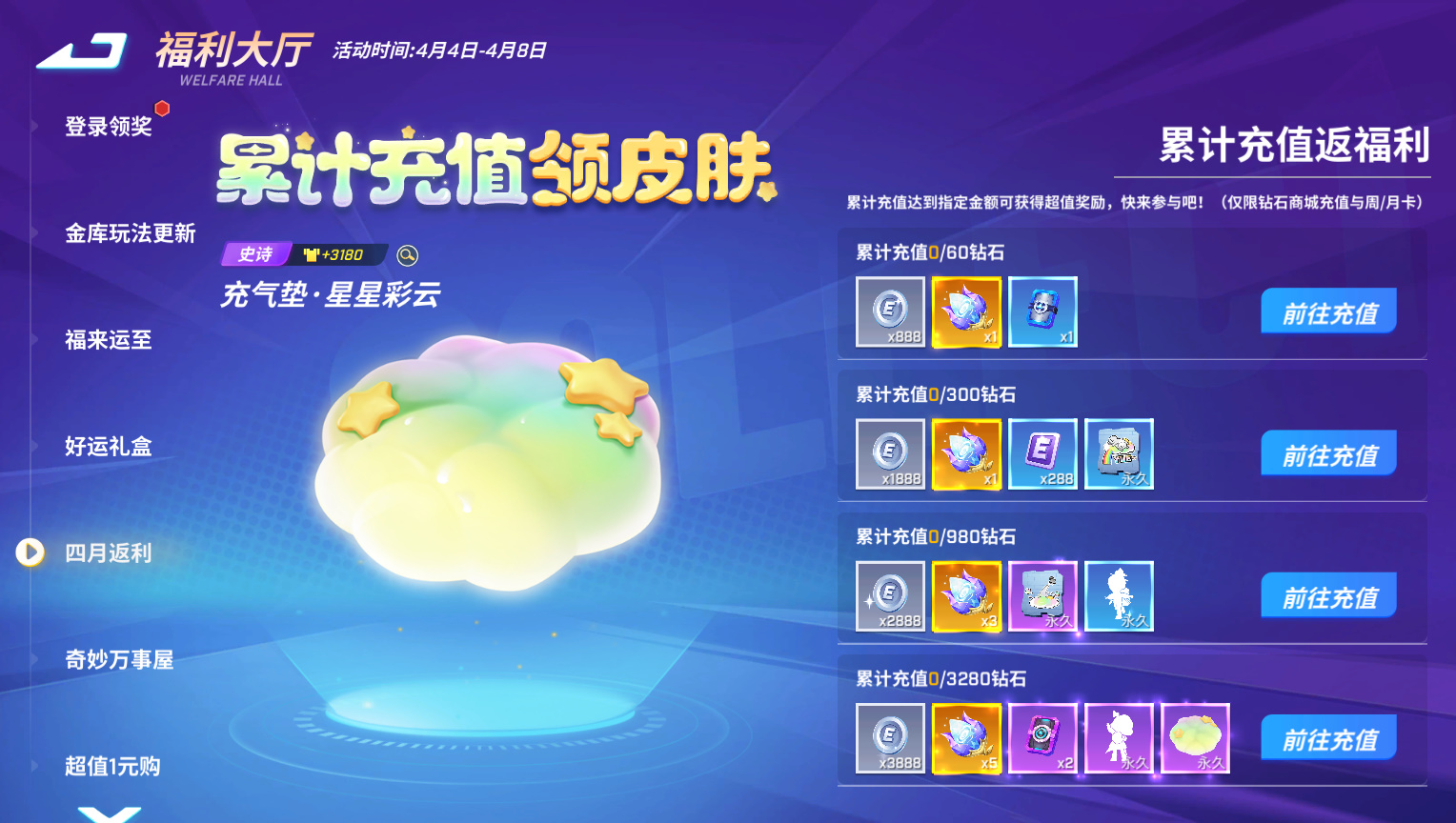 本次累计充值会有哪些精美福利呢!一起看看: