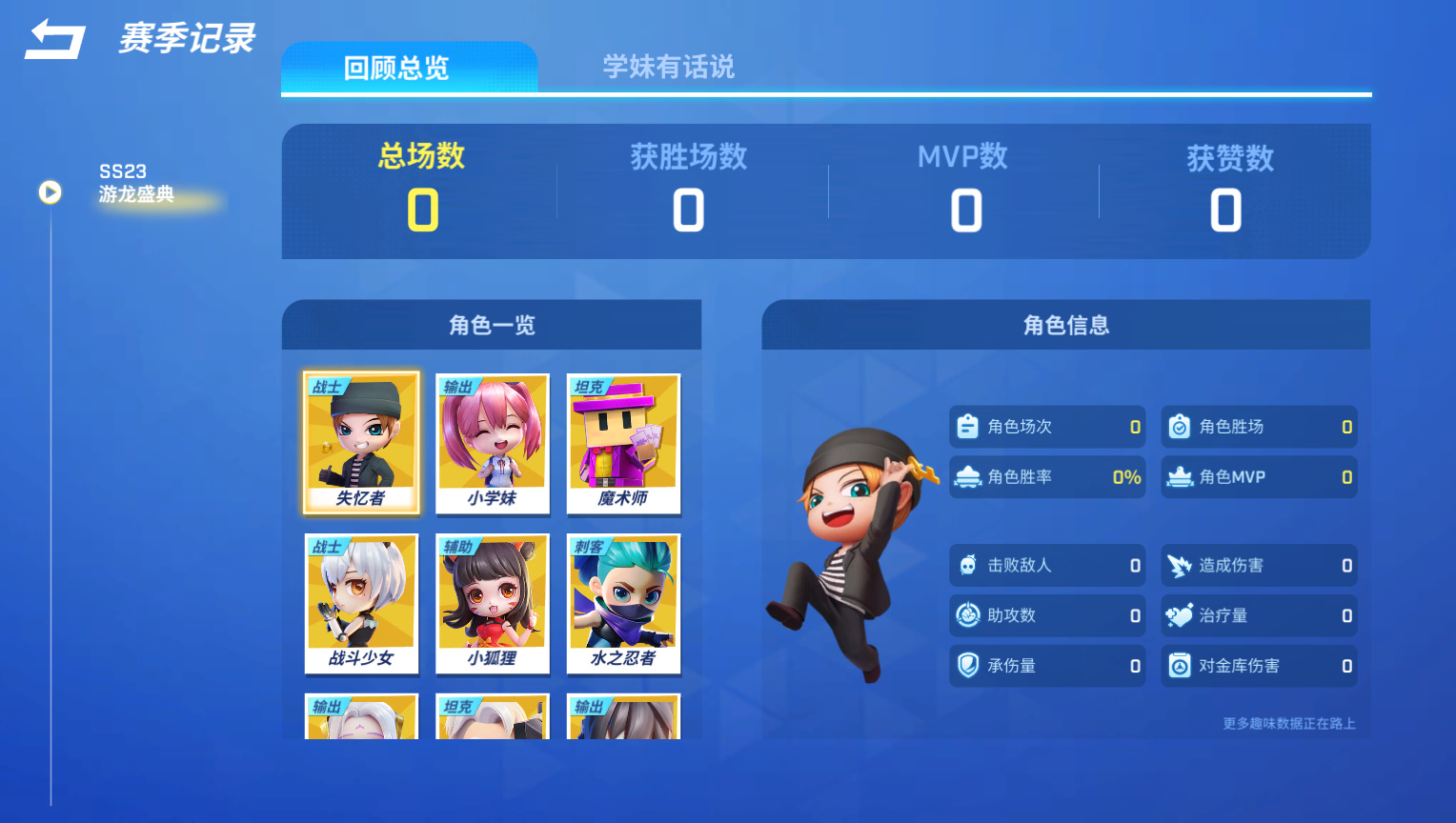 ①个人数据展示:不仅有玩家在整个玩法中的数据,也会有单个角色的数据!快来看看大家的本命角色都是谁吧~