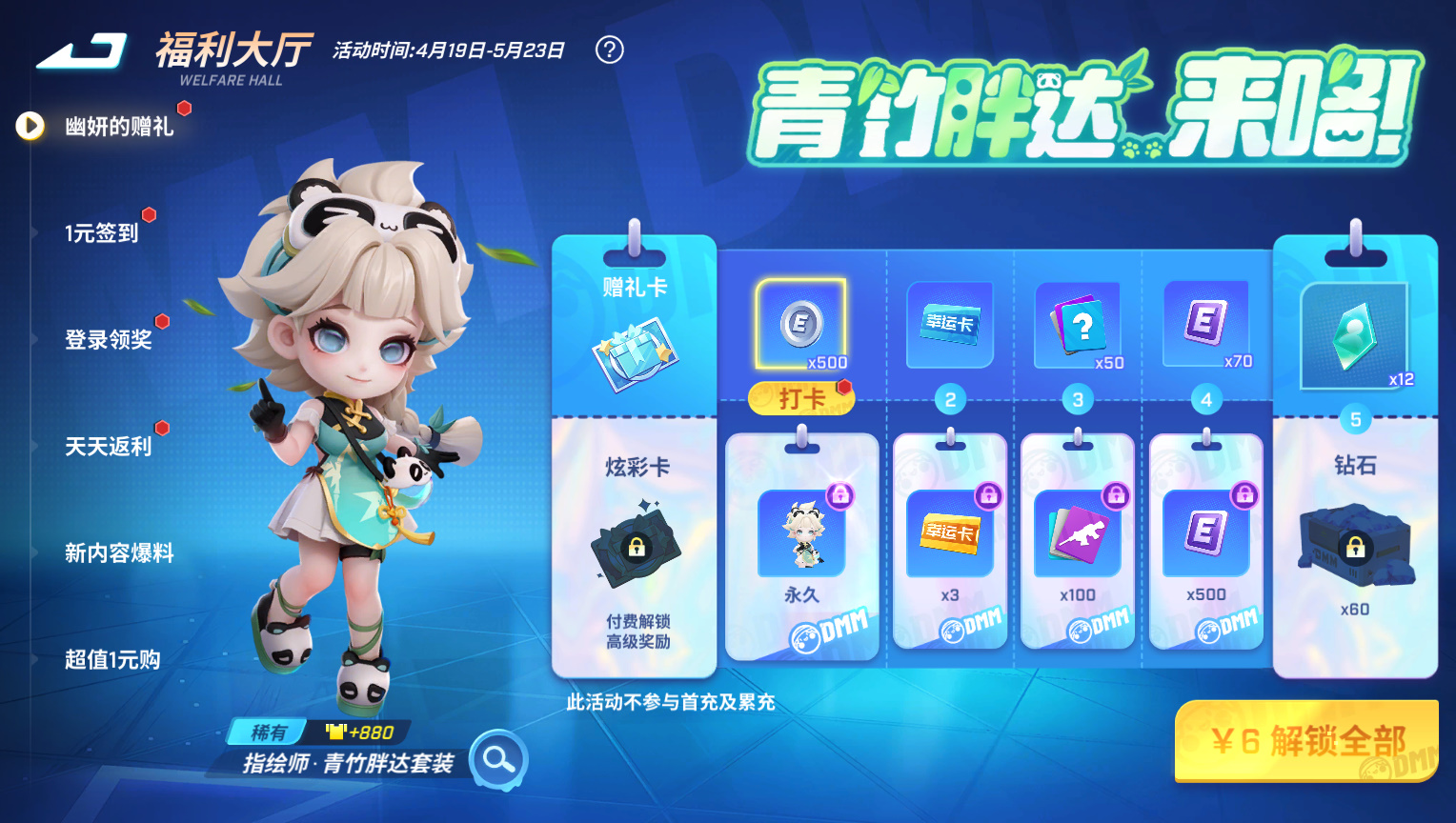 指绘师·幽妍的新装扮——青竹胖达套装上线~带上熊猫眼罩的幽妍别提多可爱啦!除了新时装,还有传说幸运卡*3、武器卡碎片*100等缤纷好礼,6元就可以全部解锁呦!