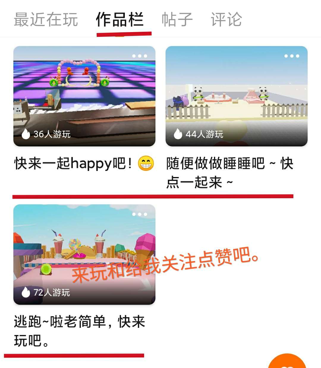 求你们给我作品能点赞吧。或者来玩也可以。超简单。😭😭😭