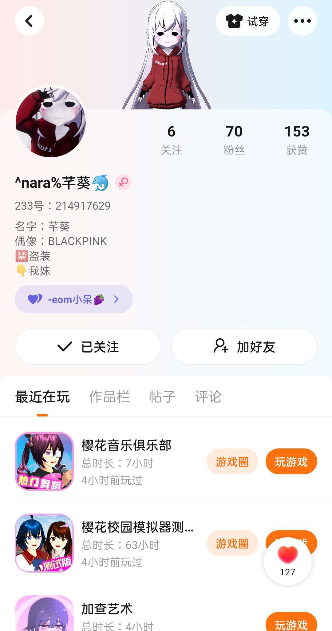 家人们谁懂啊,一不小心把234乐园删掉,又下载了一个, 粉丝都没了,好不容易有70个粉丝,都被我毁了,下面是我以前的号,关注我的我都会回