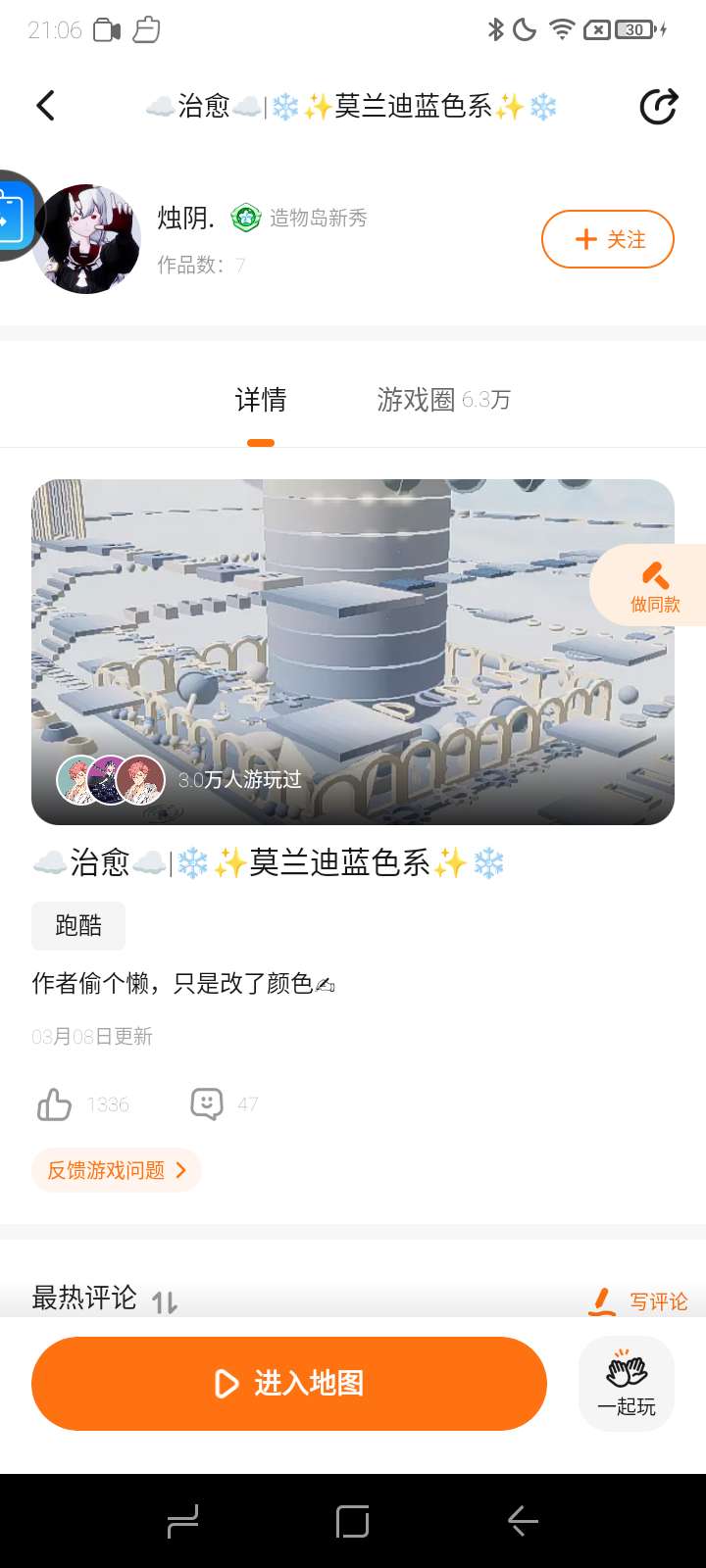 #申请精华 地图名:☁️治愈☁️|❄️✨莫蓝迪蓝色系✨❄️ 打卡一下