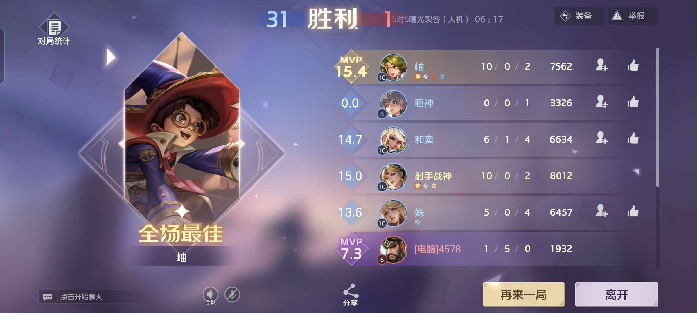 我和孙武杀得一样多,但是MPV却是他