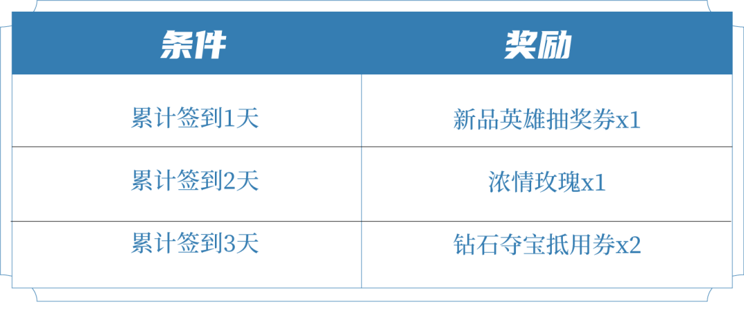 第2天/第3天00:00可分别领取:英雄畅玩卡 5张/豪华皮肤畅玩卡 5张、钻石夺宝券5张。