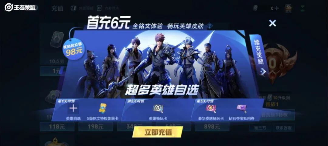首充6元,超多英雄自选
