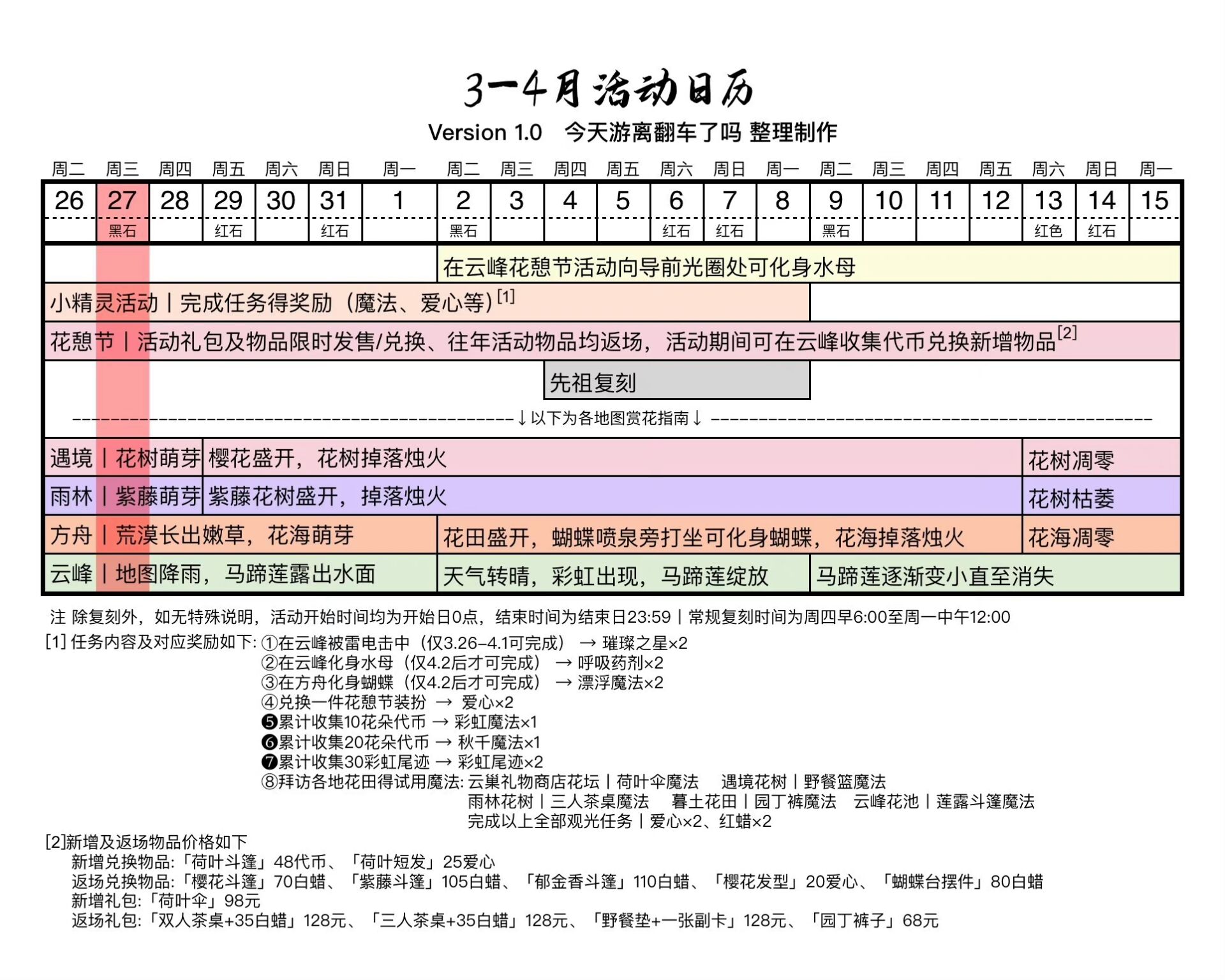 每日免费魔法[遇境商船/云巢魔法商店]: (每周三)璀璨之星 𝟮.九色鹿季任务五开始啦!!猎杀时间到 𝟯.花憩节相关活动进行中
