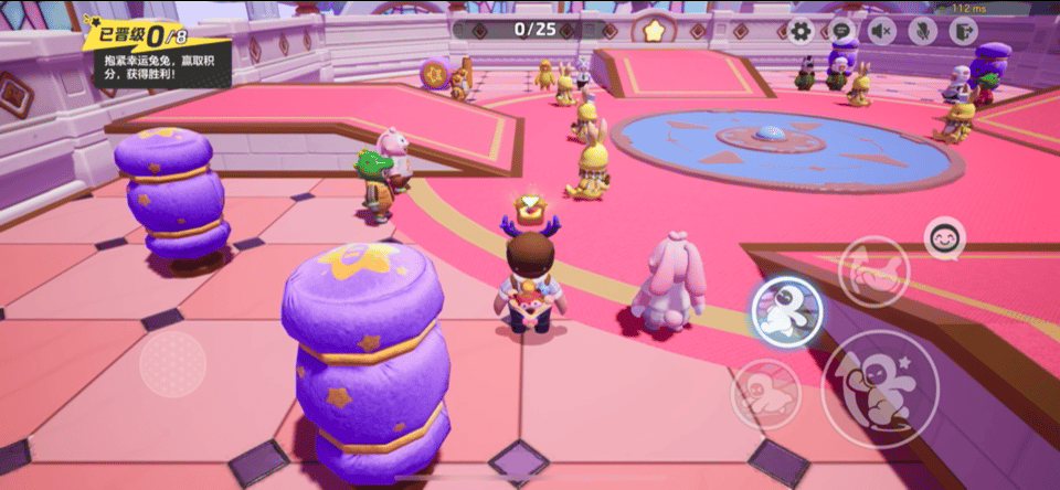 随着比赛开始,广场中间的六只兔子身上开始冒起金光,在赛场中的辨识度很高。星宝可以在倒计时结束后直接摁下冲刺键,冲向离自己最近的兔子,点击抱起就可以抱着兔子到处跑啦!