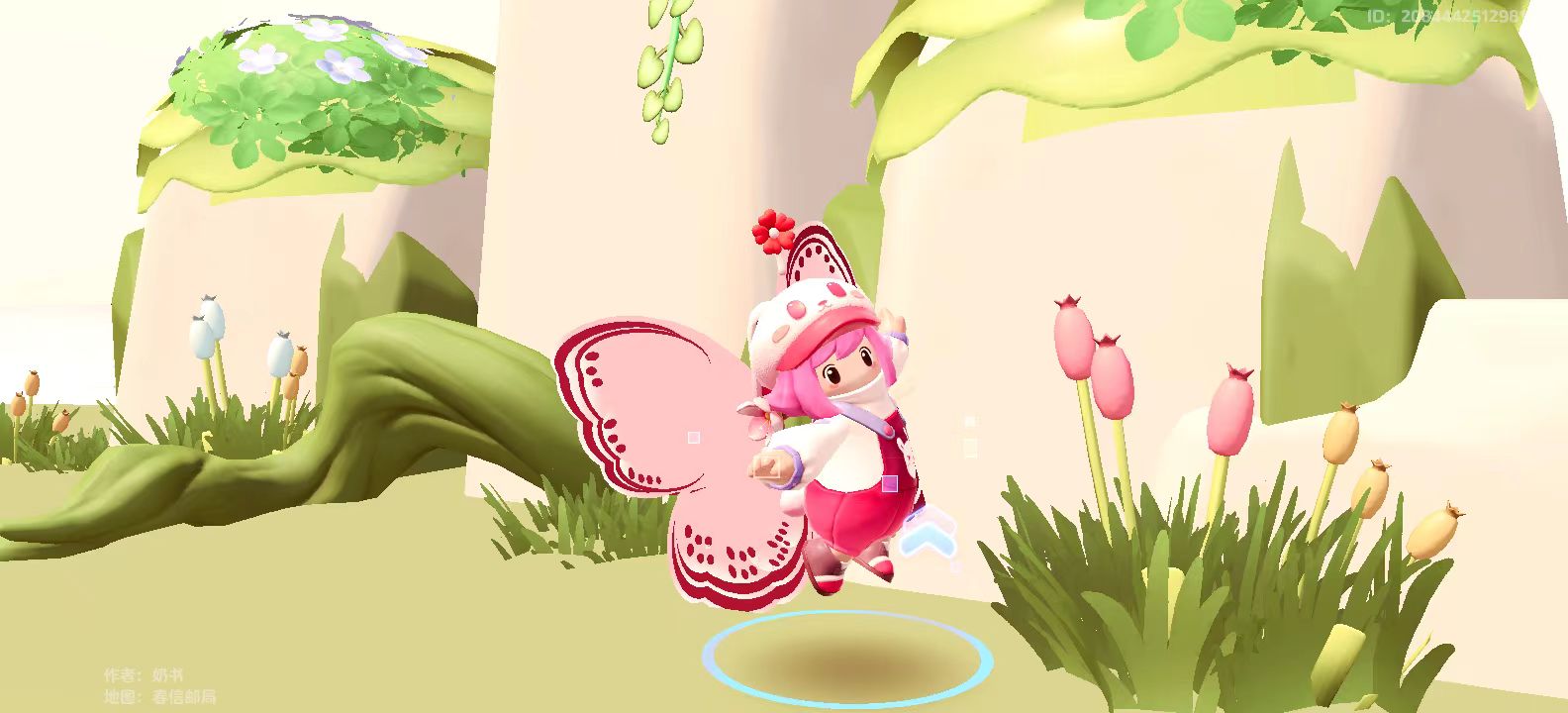 视角再次转换,远处巨大的粉色蝴蝶在朝星妹打招呼,草地上还种着粉色郁金香,地上的追光好像在告诉星妹这里是每个星宝的独家舞台哦~在这里星宝也可以体验一把变成蝴蝶的感觉,背起蝴蝶小翅膀,完成华丽COS!(别忘了记录精彩瞬间~)