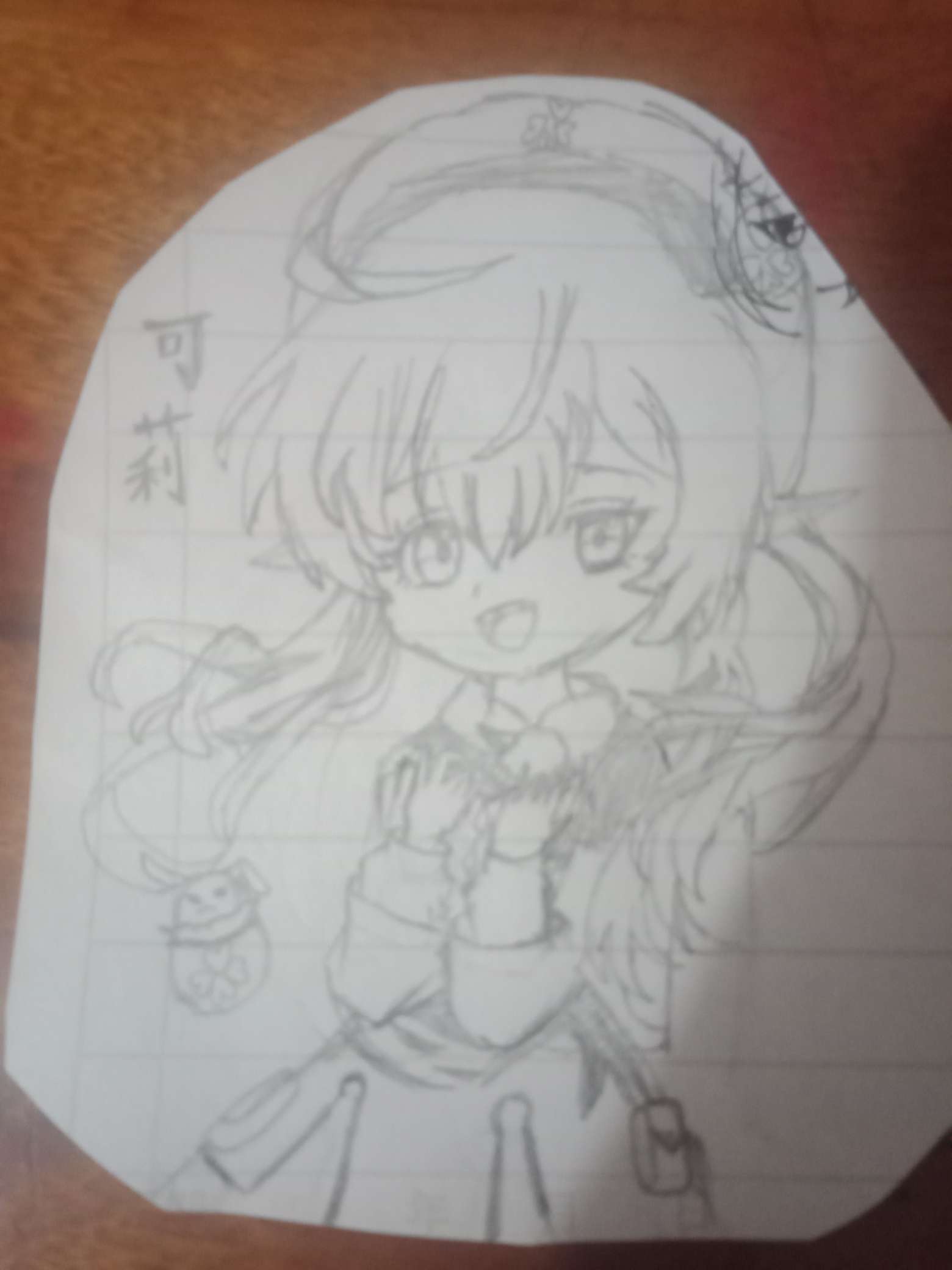 这是我画的可莉。(画的实在不太好,但也已经尽力了。)