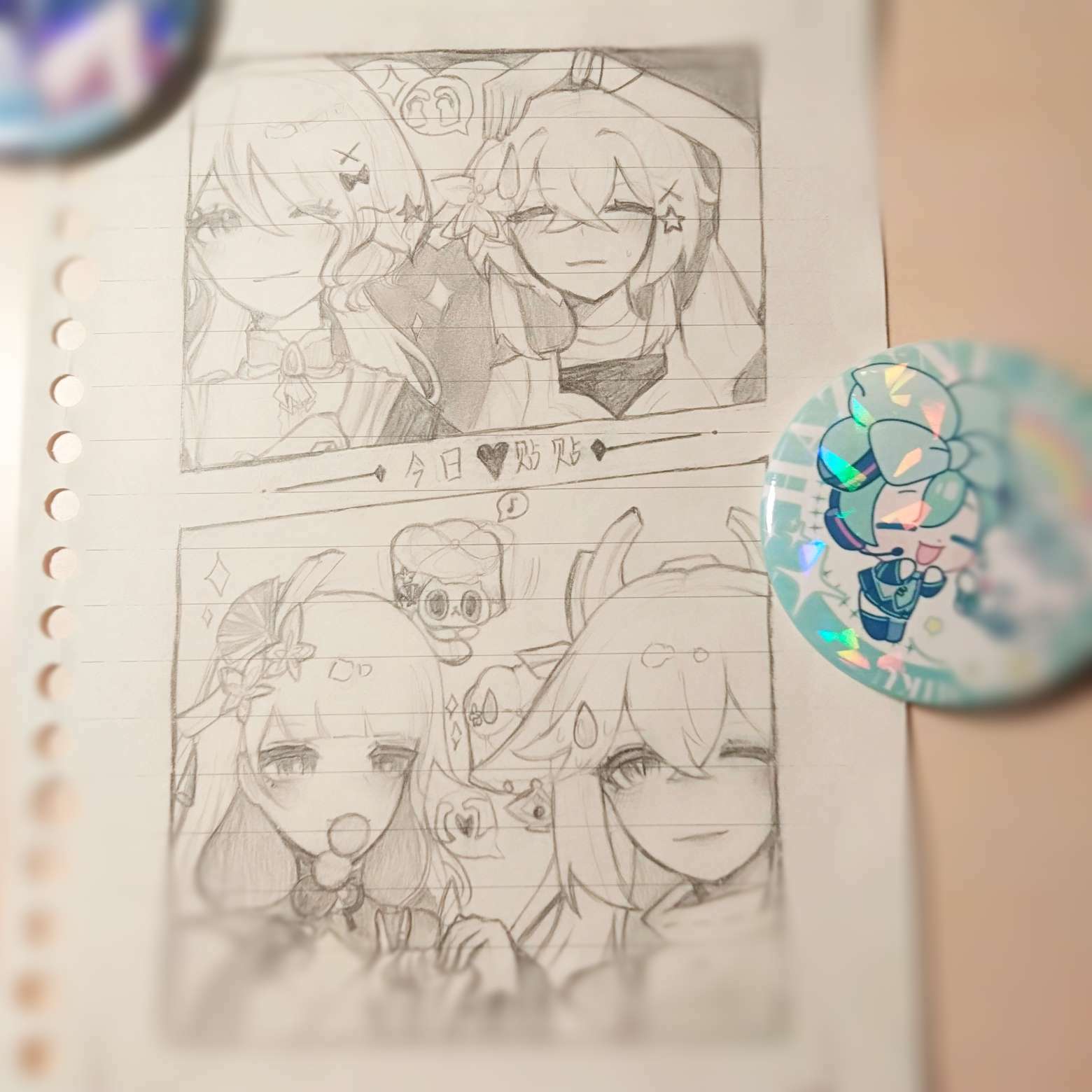 ✨画我磕的cp 💞😋 新买了个初音未来的吧唧,可爱捏💘摆上摆上 (荧和芙芙💦是换了套衣服哟)
