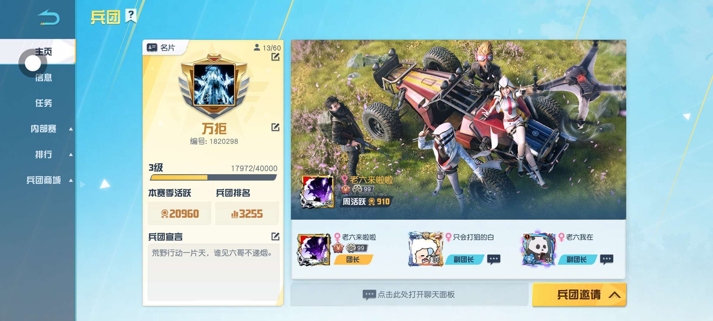 兵团招人。段位不限,快点来,每周都有福利。