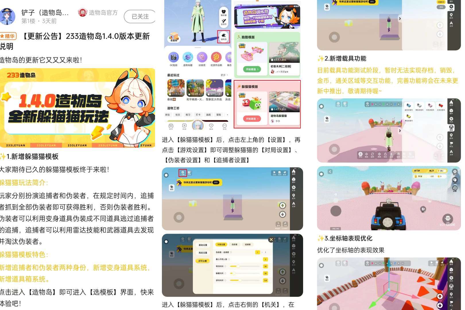 本次233造物岛更新了躲猫猫模板,感兴趣的小伙伴一定要来试试!(帖子233号:524292)