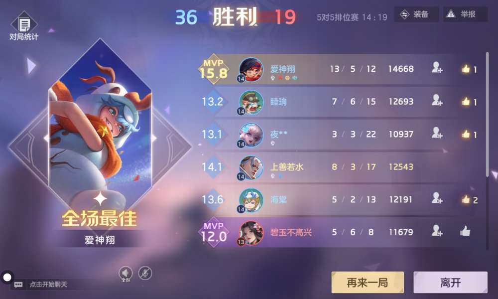 嘿嘿,今天排位终于赢了一把了