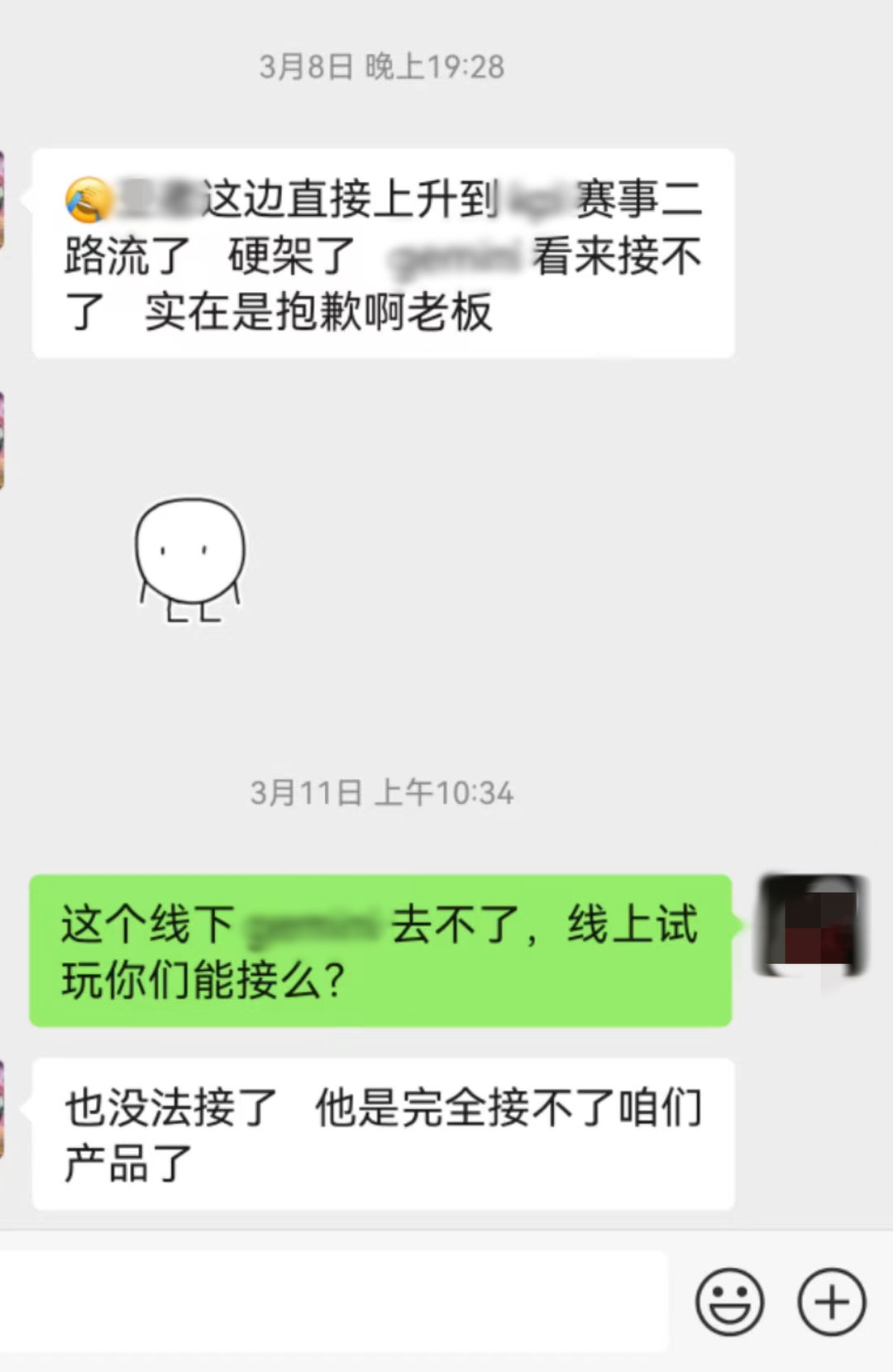 他们说,“那边”明令不让接永劫手游的合作,还让他们签了排他协议,接了劫妹的合作,就别想再有“那边”的单子了。