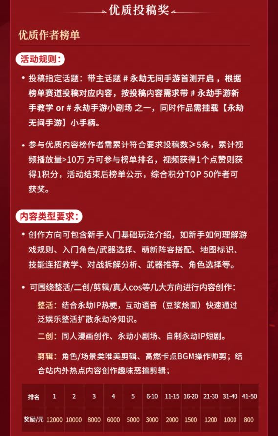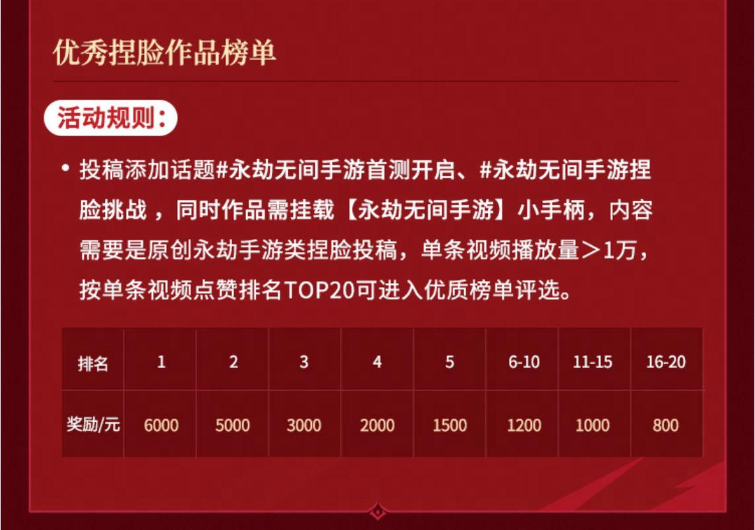 活动期间,粉丝≥1万的创作者,携带话题并围绕永劫无间手游内容产出攻略、剪辑、整活、二创、捏脸等各类优质视频,即可瓜分奖金。