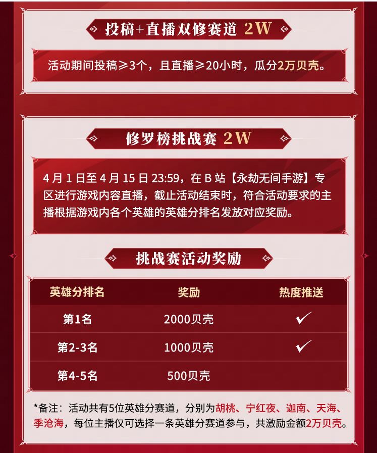 活动期间,围绕永劫无间手游新游上线内容直播,或围绕手游测试相关(冲榜、教学、整活)内容产出直播,即可参与TOP人气主播奖和先锋任务奖,瓜分高额奖励!