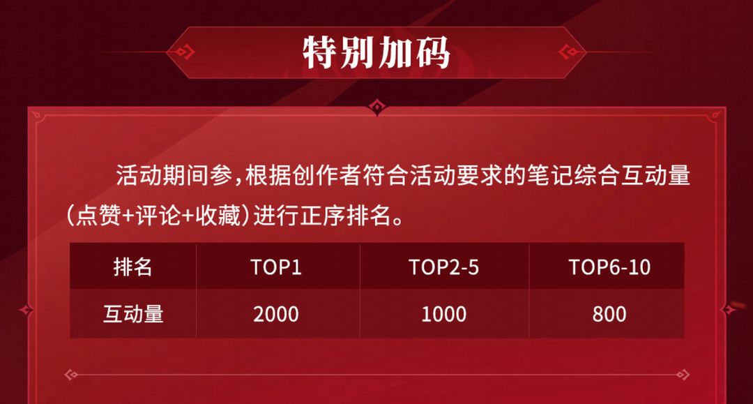 只要带话题#永劫无间手游启动+以及各赛道对应话题,发布手游教学、对局时刻、捏脸、二创相关内容,根据笔记综合互动数(点赞+评论+收藏)≥50的创作者即可参与!