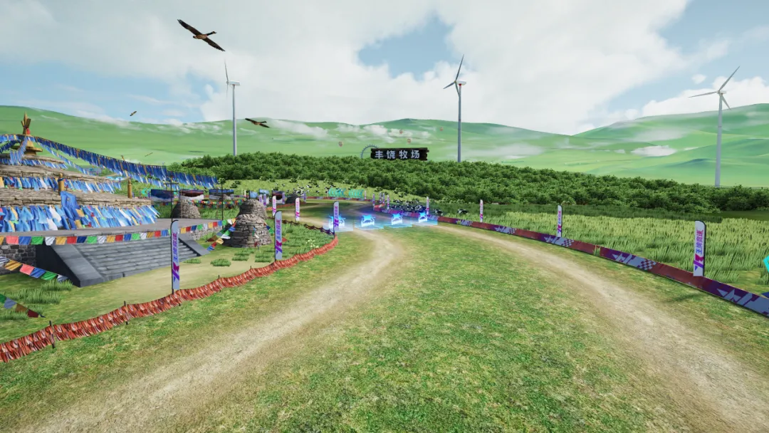蓝天白云下,碧波荡漾的湖泊和苍翠的草原构成了一幅美丽的画面,但赛道中设置的全新互动装置,也在时刻提醒着各位车手们,这不仅仅是一场身临其境的自然风光之旅,更是一场尽情开大的竞速争夺!