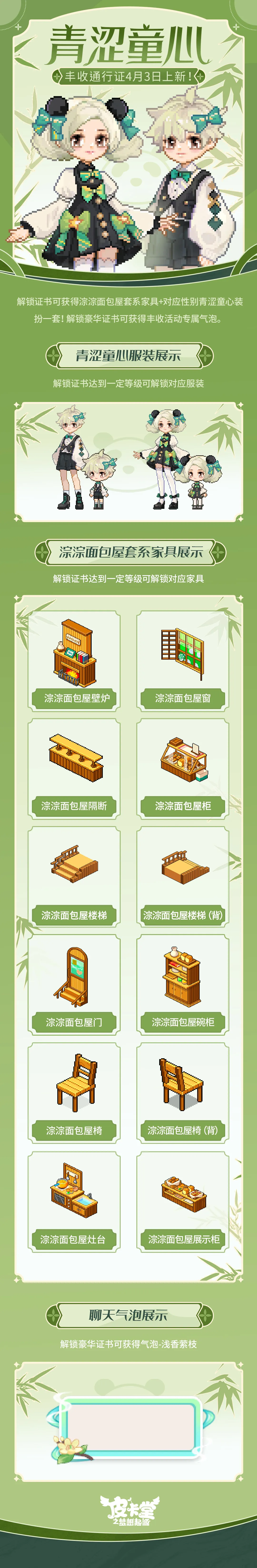 可获得【淙淙面包屋】套系家具、华丽套装【青涩童心】,