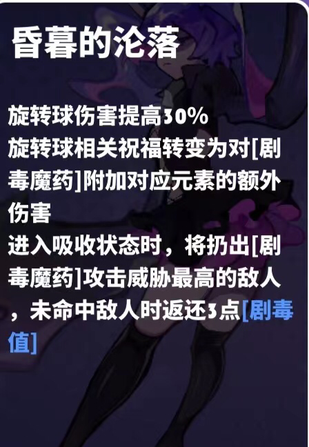 瘴毒(迪斯):全覆盖额外伤害(中毒与销蚀两层,有其他附加伤害可以触发中毒以外的属性则可以偶尔三层)