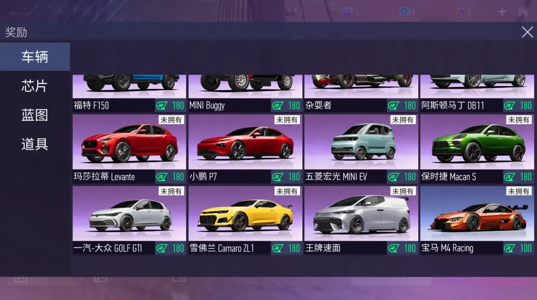 补给采购车辆上新了!各位车手快来寻宝-补给采购看看吧。新增车辆:宝马X5、玛莎拉蒂 Levante、雪佛兰 Camaro ZL1、MINI Buggy、保时捷 Macan S、一汽-大众 GOLF GTI。
