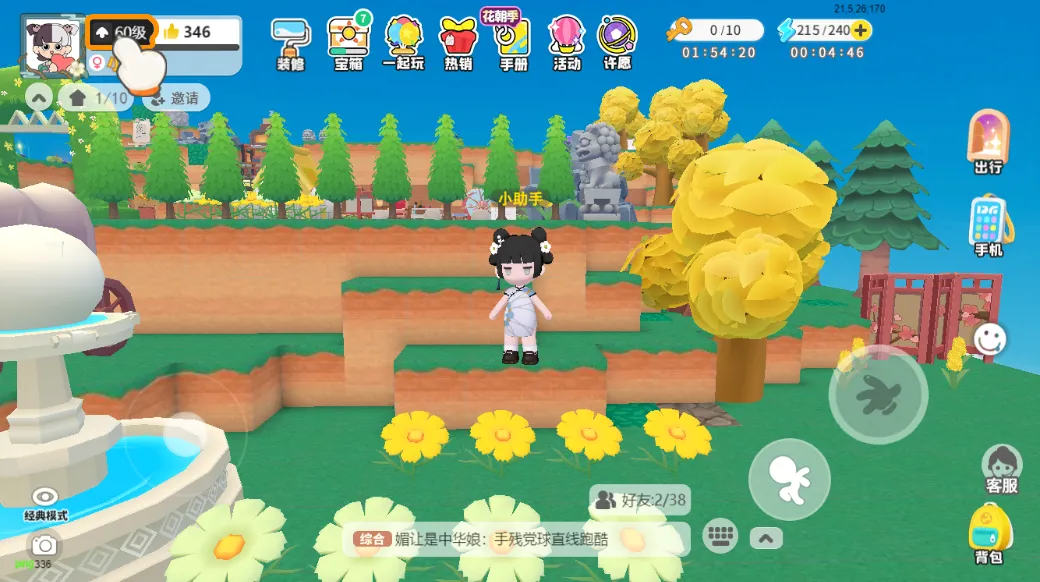 在主界面还新增加了一个【宝箱】按钮。参与“一起玩”或者去别人家串门、参与计时跑酷都可以获得阳光能量,收集足够的能量将会获取阳光宝箱。